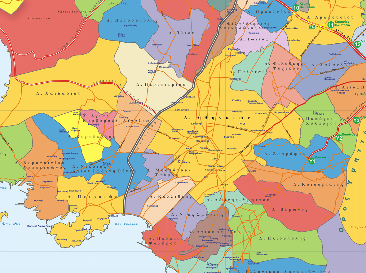 Χάρτης Αττικής με τους Καλλικρατικούς Δήμους.