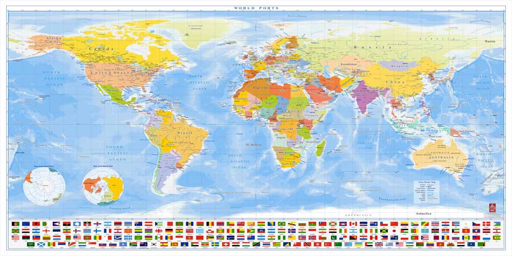 Παγκόσμιος Χάρτης με τα κυριότερα λιμάνια όλου του κόσμου.