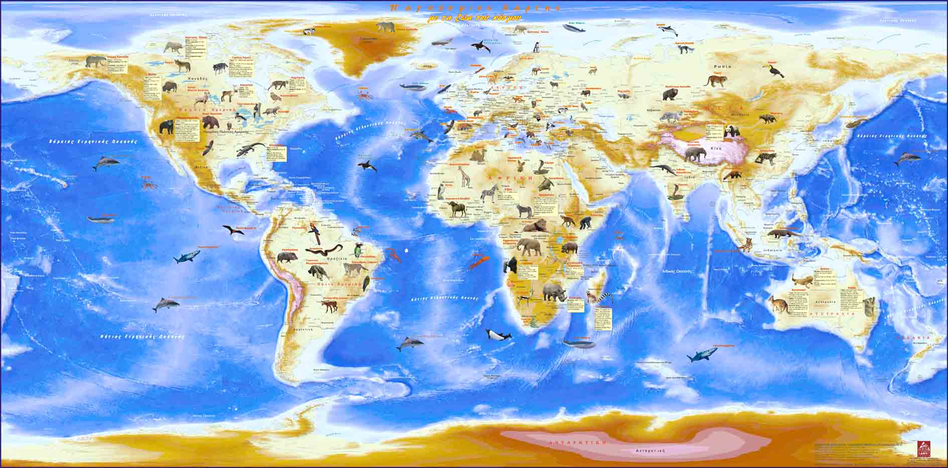 Παγκόσμιος Χάρτης με τα Ζώα - Μαθαίνω τα ζώα του κόσμου