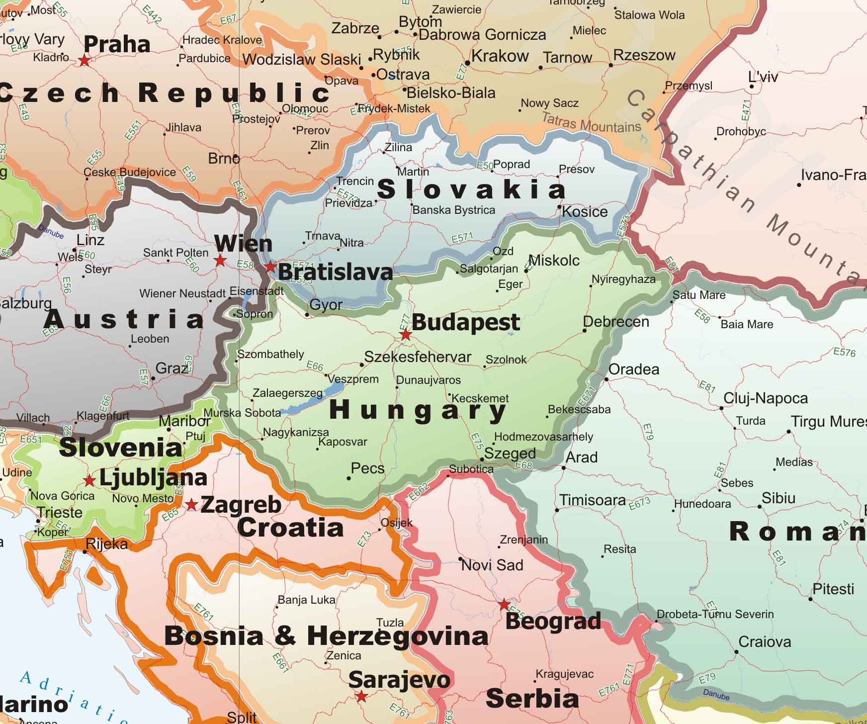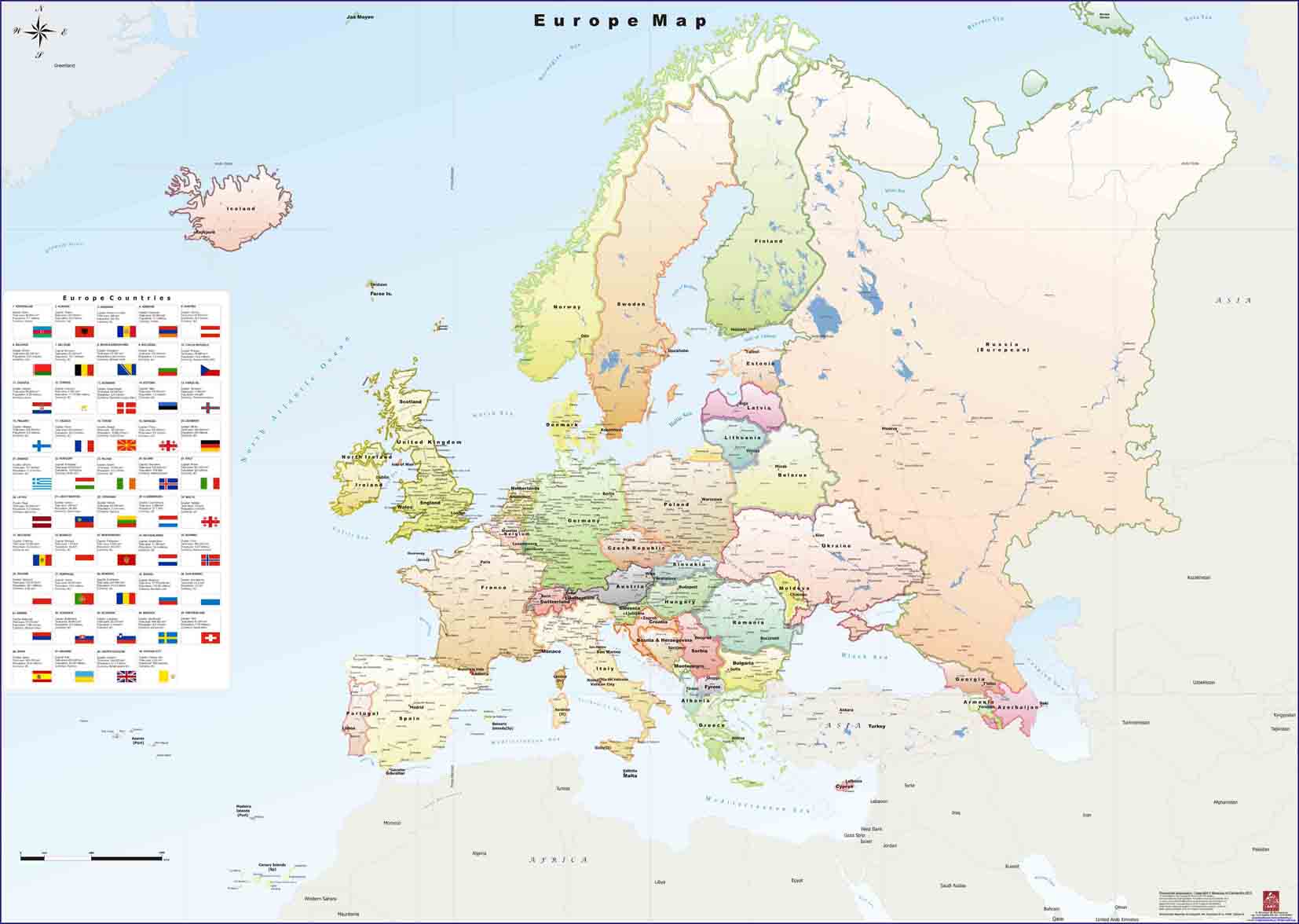 Χάρτης Ευρώπης (Αγγλικά) με κύριο οδικό δίκτυο