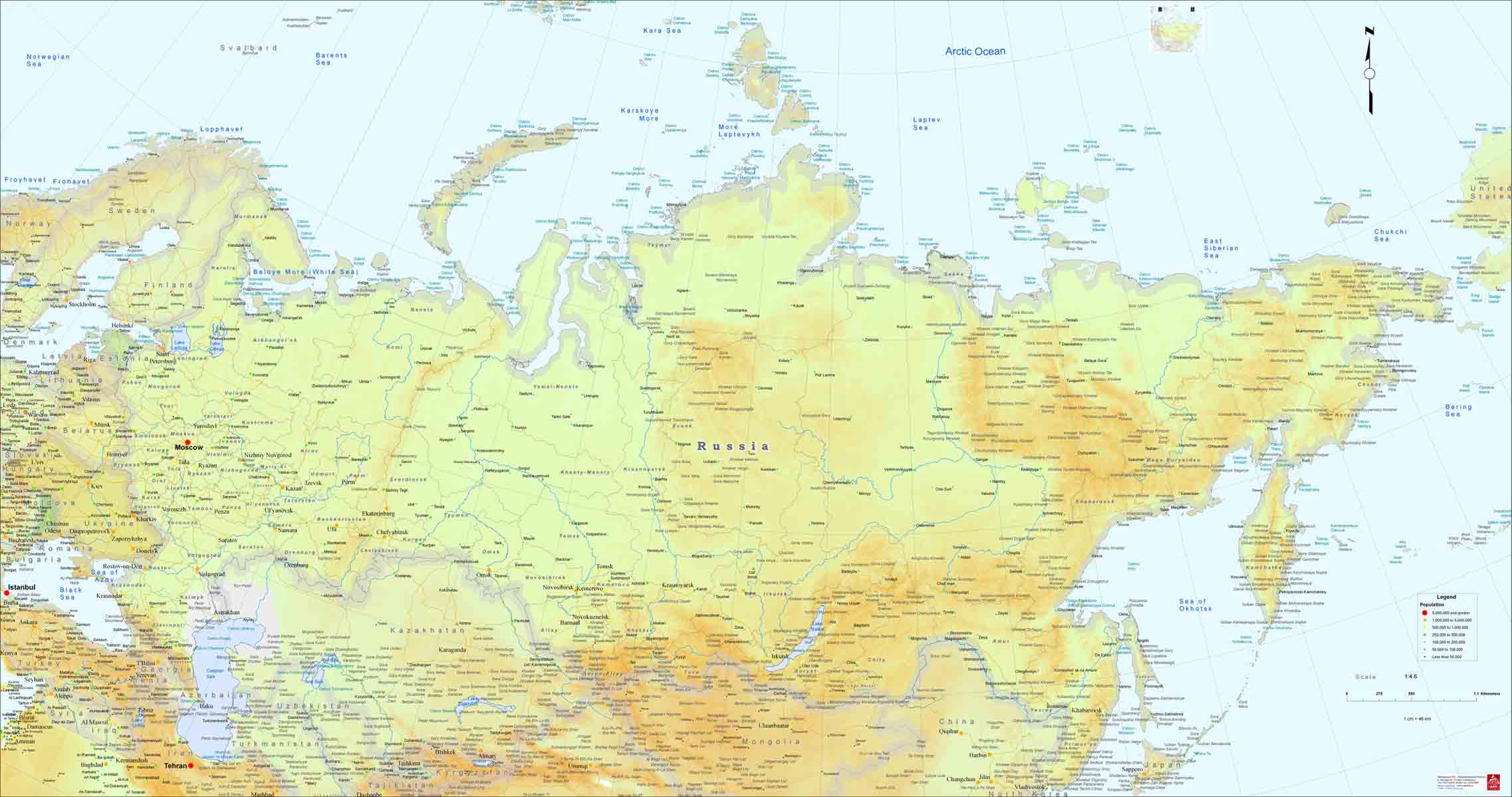 Χάρτης Ρωσίας (Ανάγλυφος)