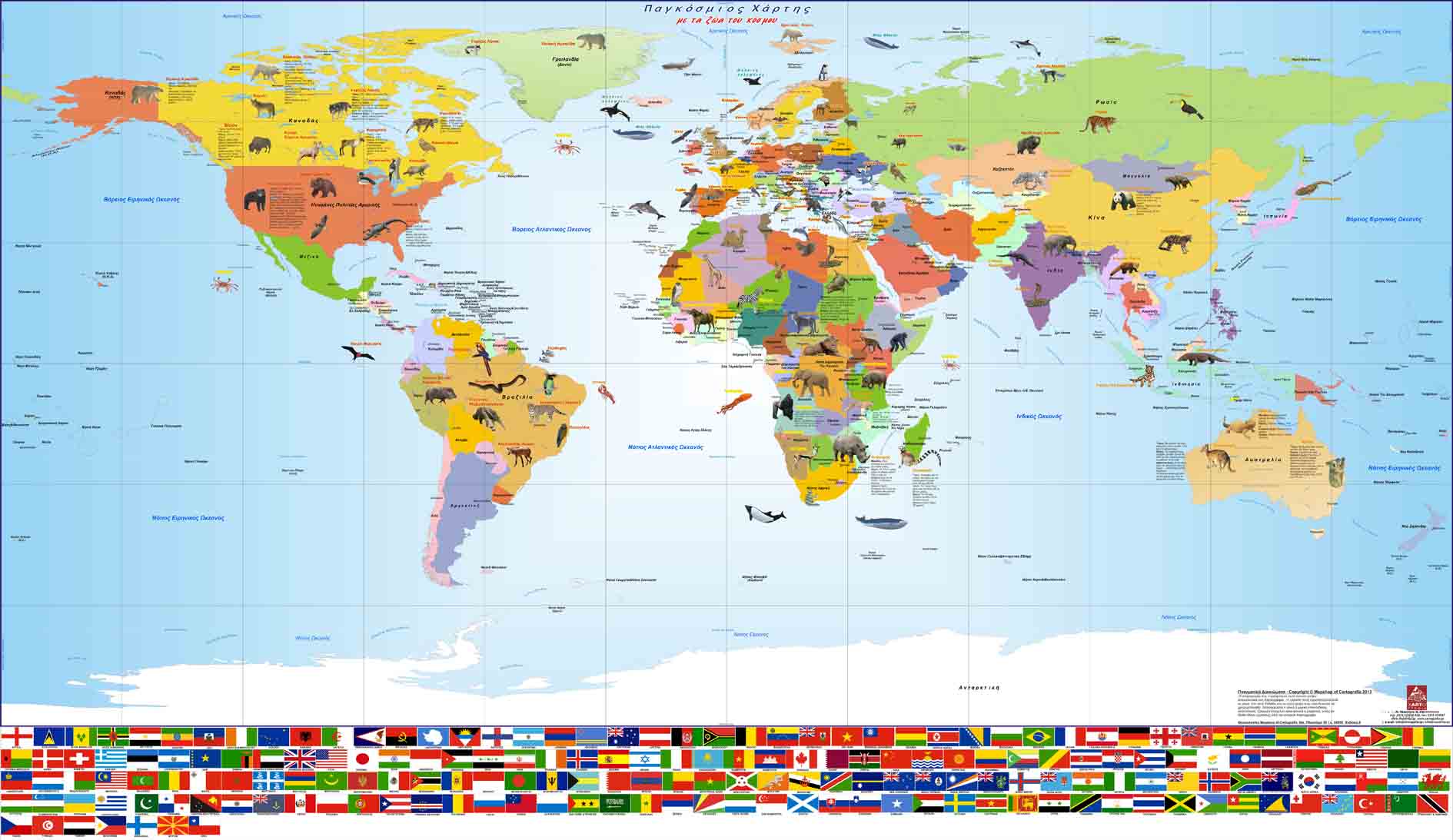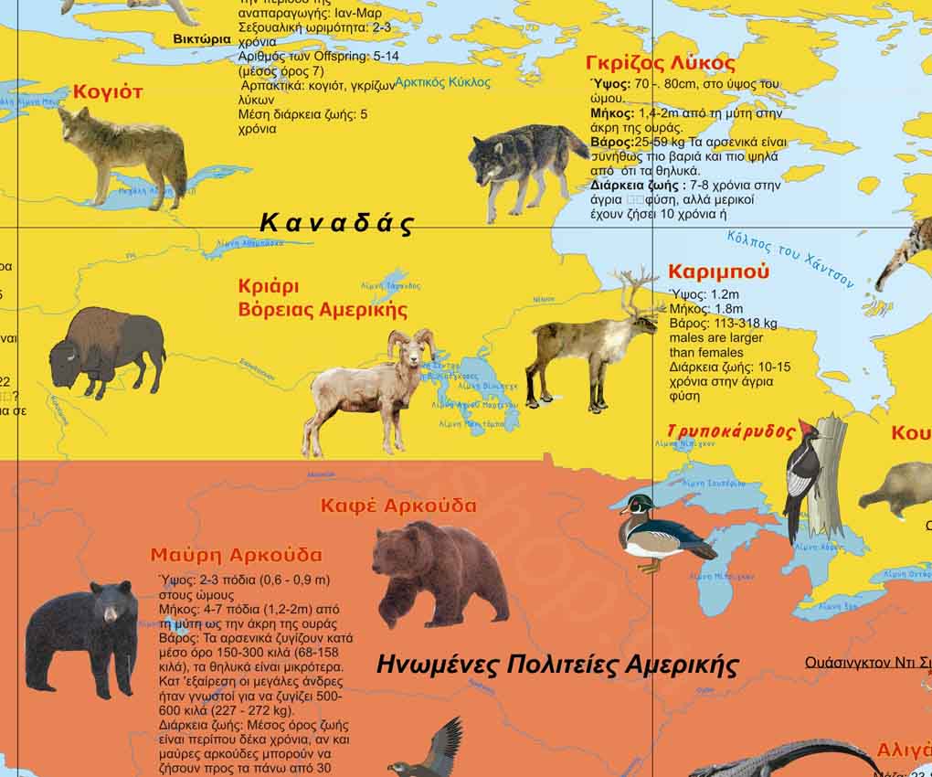 Παγκόσμιος Χάρτης με τα ζώα του κόσμου (Ελληνικά)
