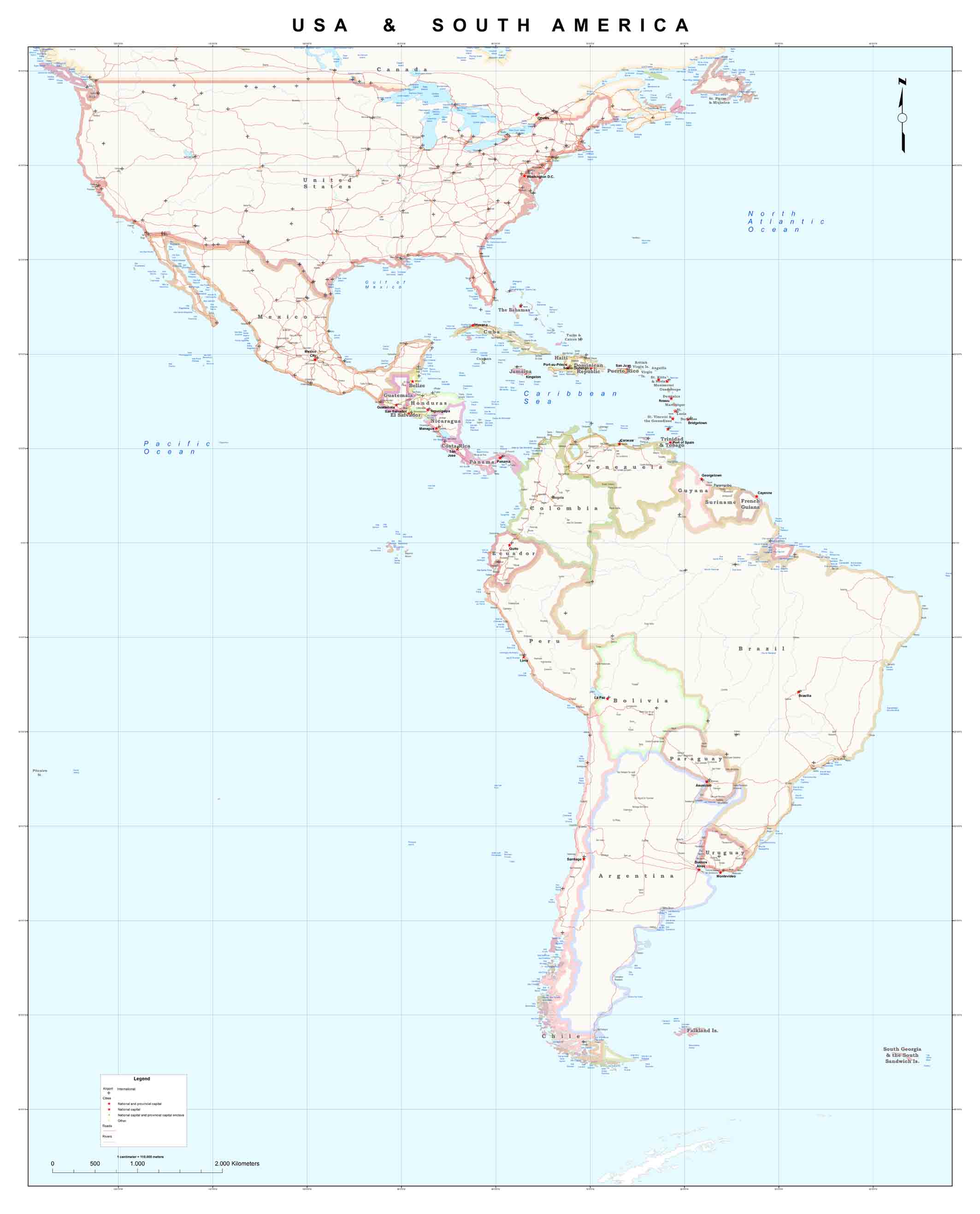 Χάρτης ΗΠΑ & Νότιας Αμερικής