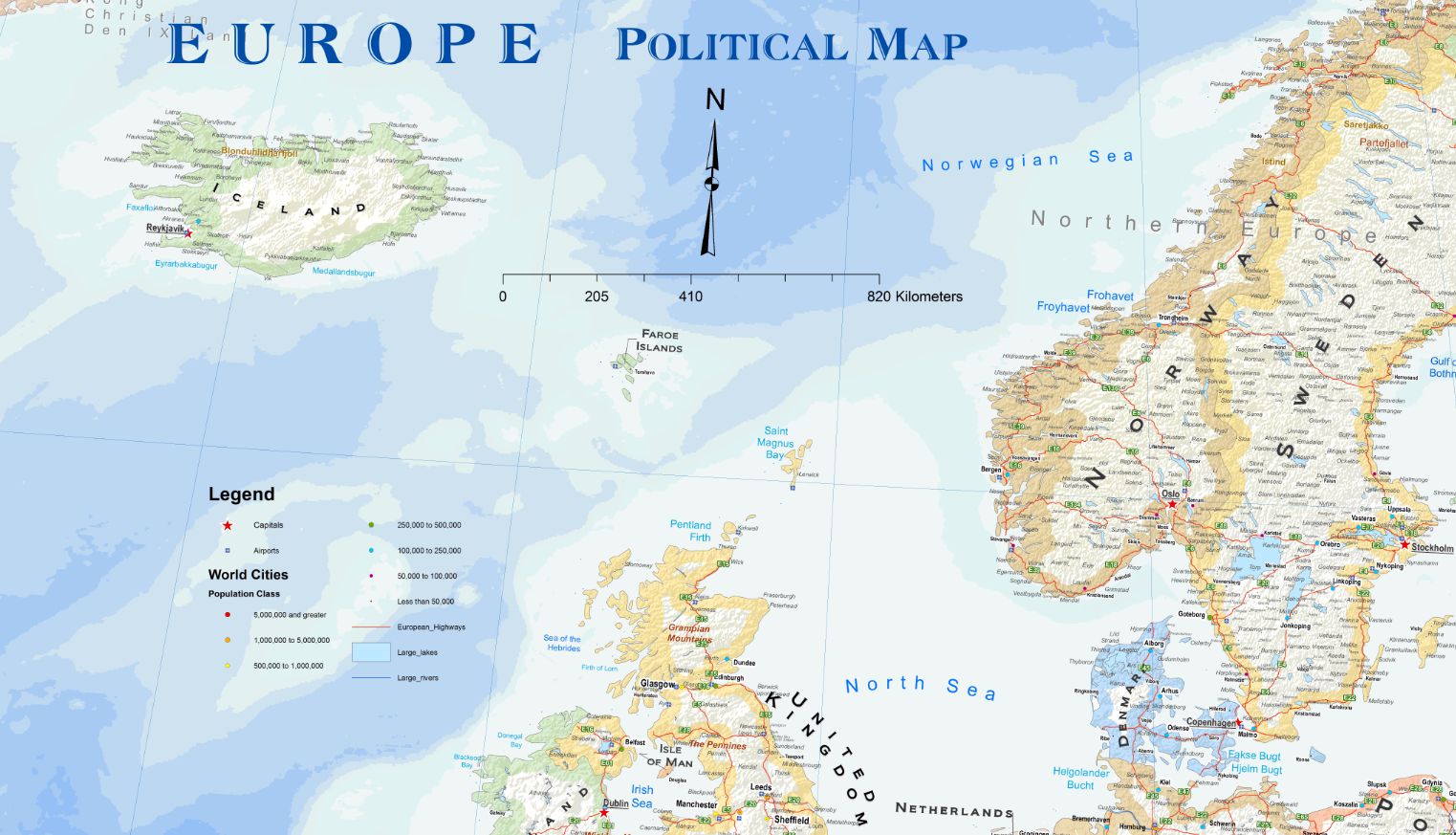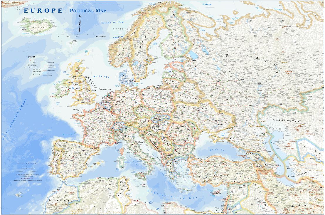 Ο Νέος Χάρτης της Ευρώπης,αναλυτικός,με λεπτομέρεια και με το βασικό οδικό δίκτυο.