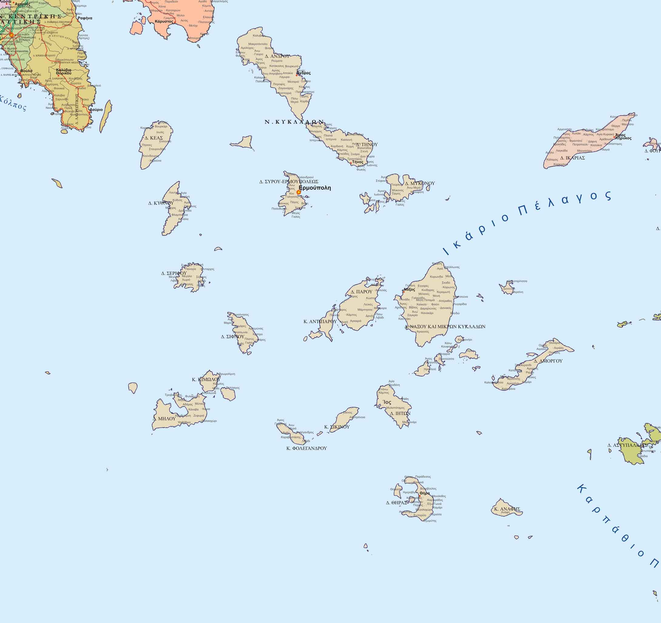 Ο Χάρτης Ελλάδας με τους Νέους Δήμους συμφωνα με το σχέδιο Καλλικράτης, χρωματισμένος ανά Νομό. Διατίθεται σε πλαστικοποιημένη μορφή, σε βινύλιο, μουσαμά, υφασμα κ.λπ