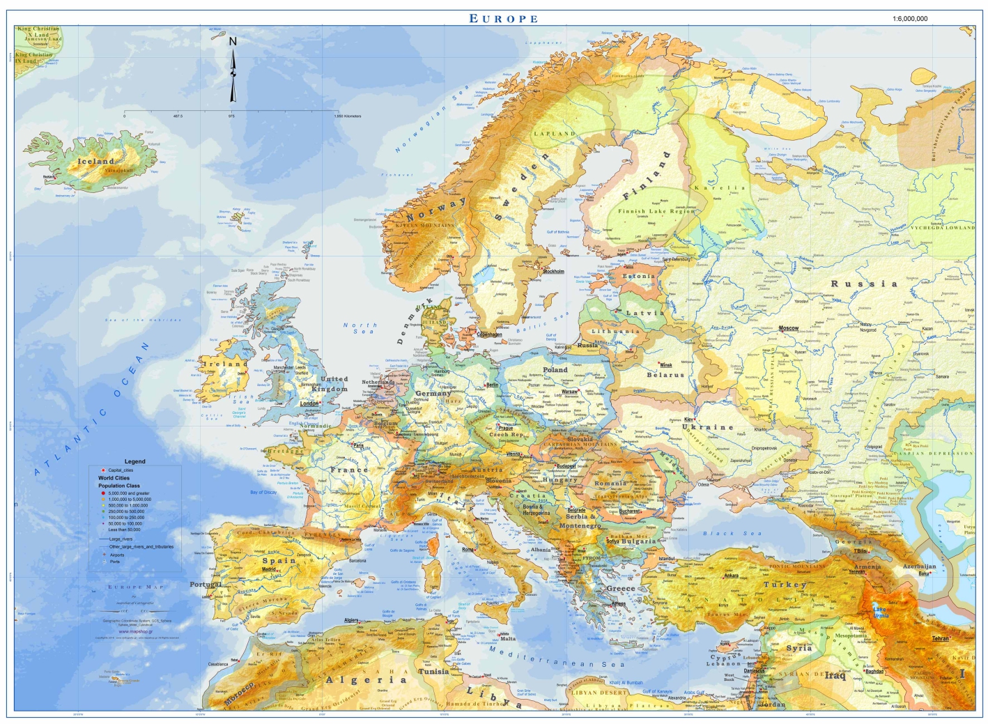 Ενας νέος Χάρτης Ευρώπης με στοιχεία και Γεωφυσικά (Οροσειρές, Οροπέδια. Πεδιάδες, Ποτάμια , Λιμνες κλπ) και Πολιτικά όπως τις μεγάλες Πόλεις της Ευρώπης άνω των 100000 κατοικων, Κράτη με συνορα χρωματικά διαχωρισμένα κ.λπ. Κατάλληλος για παιδικό δωμάτιο, για Σχολεία και για διακοσμηση