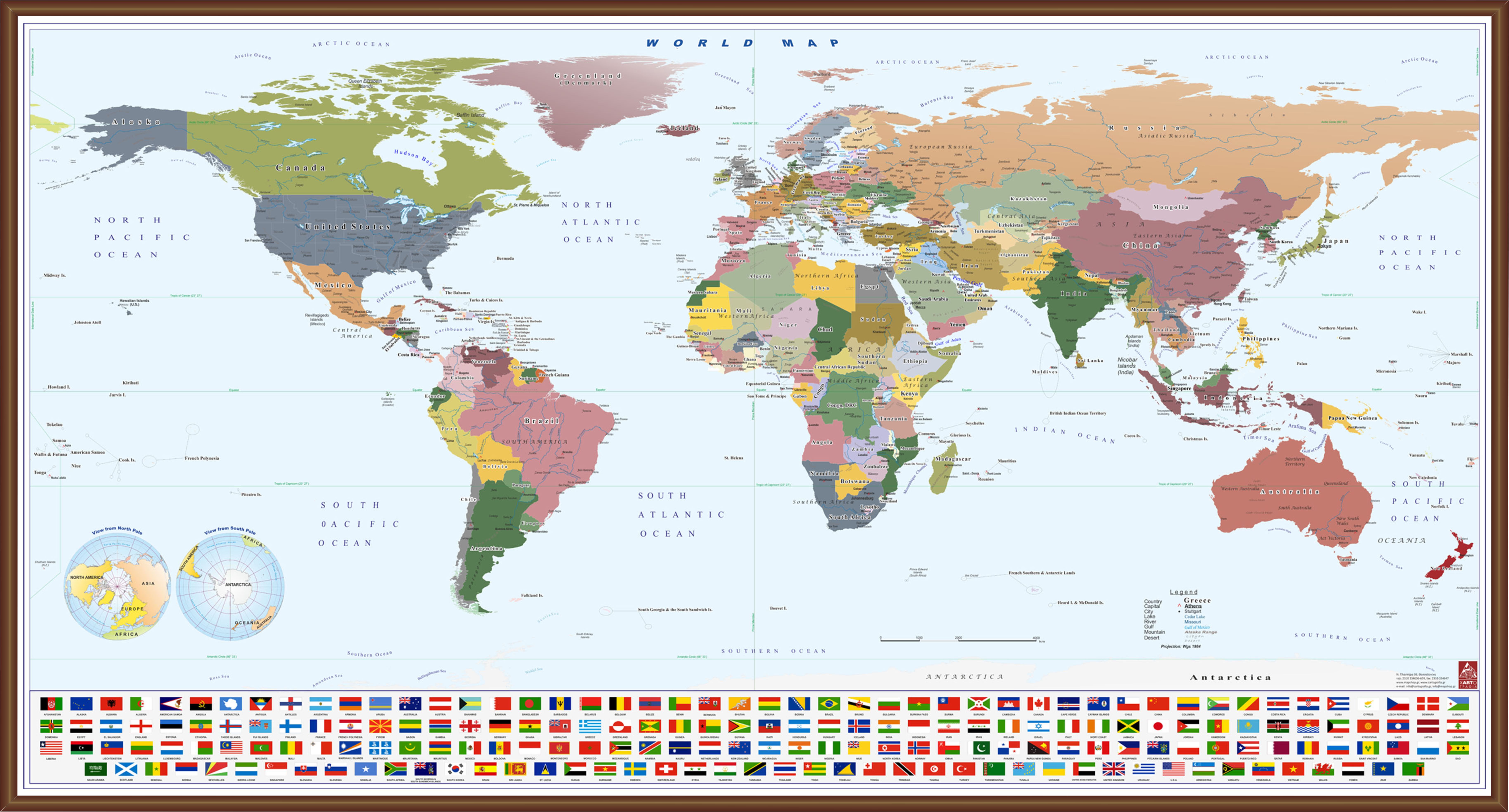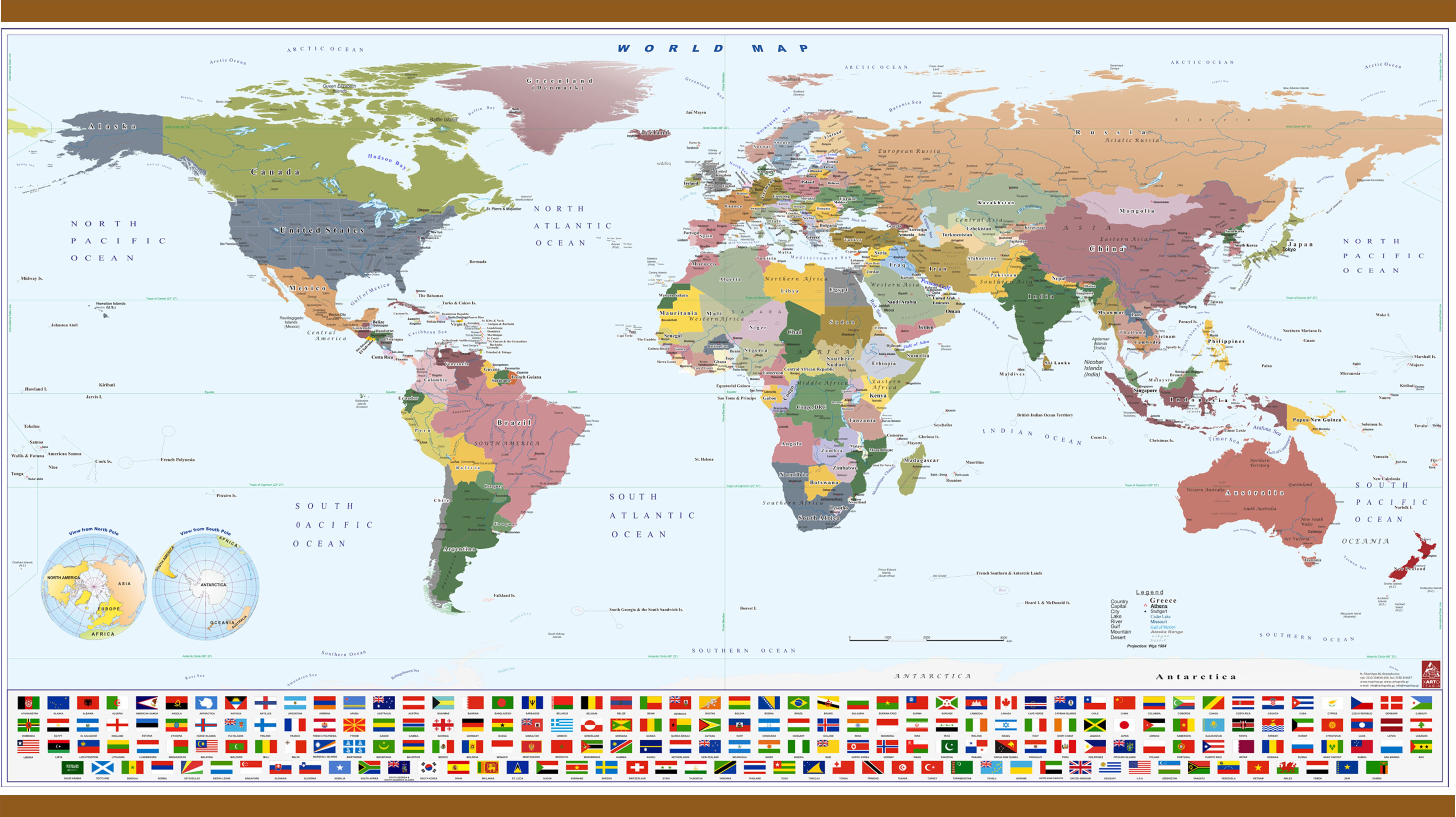 Παγκόσμιος Χάρτης με σημαίες χωρών στα Αγγλικά.
