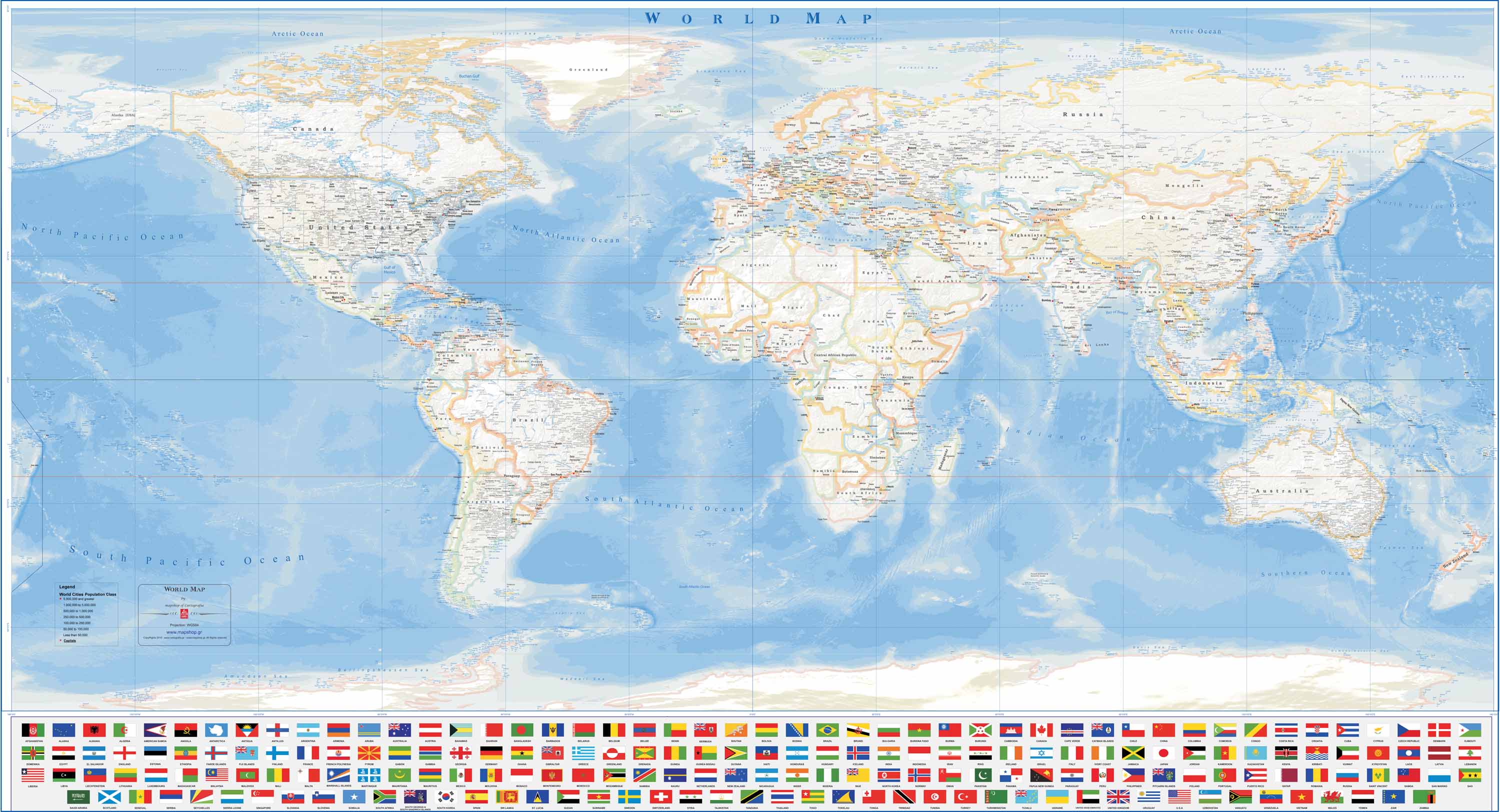 Παγκόσμιος Χάρτης με τις σημαίες των χωρών και τον πληθυσμό.