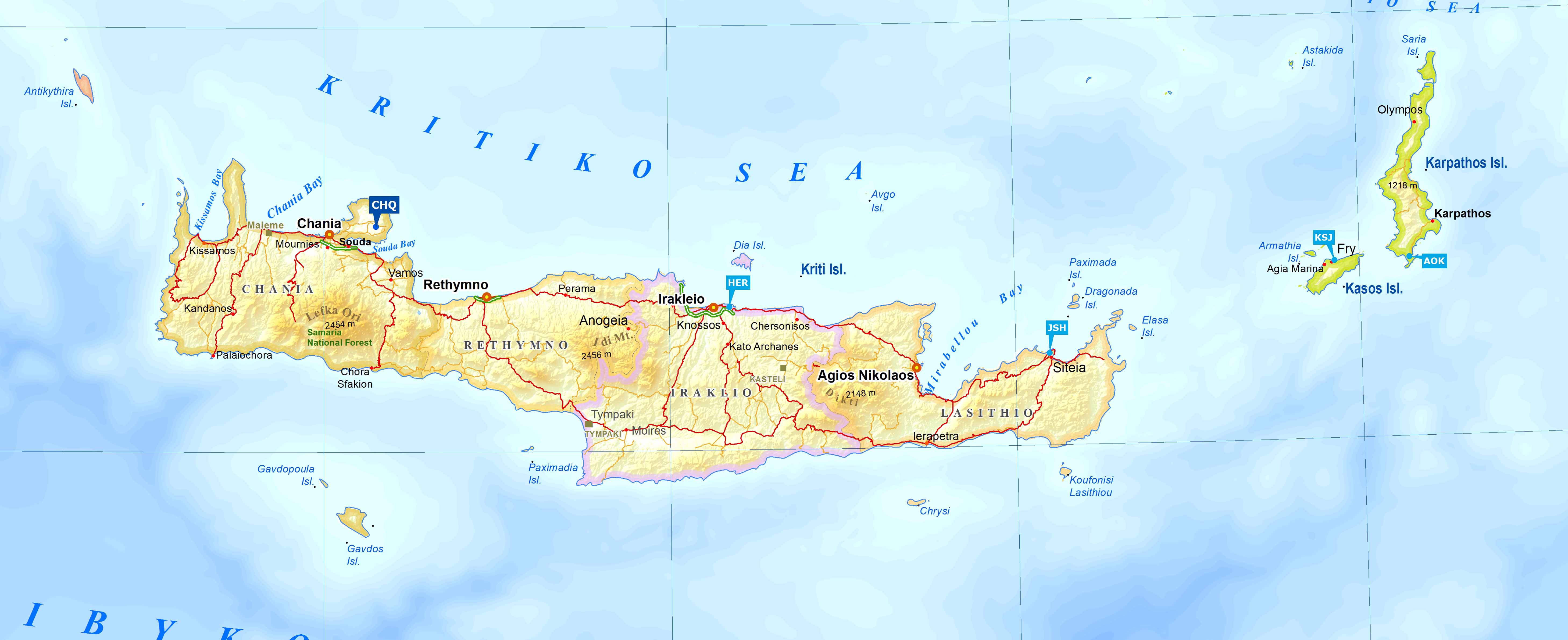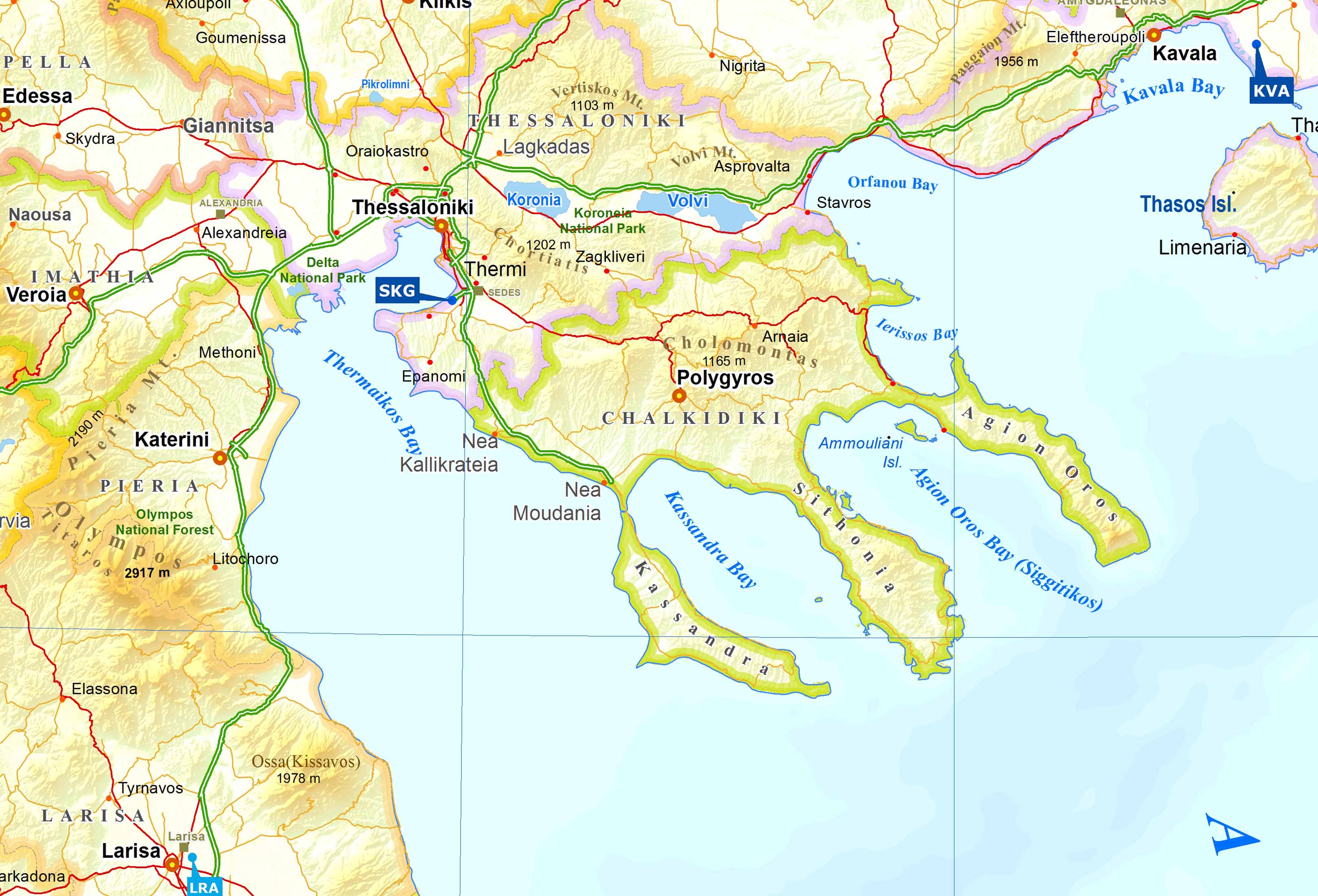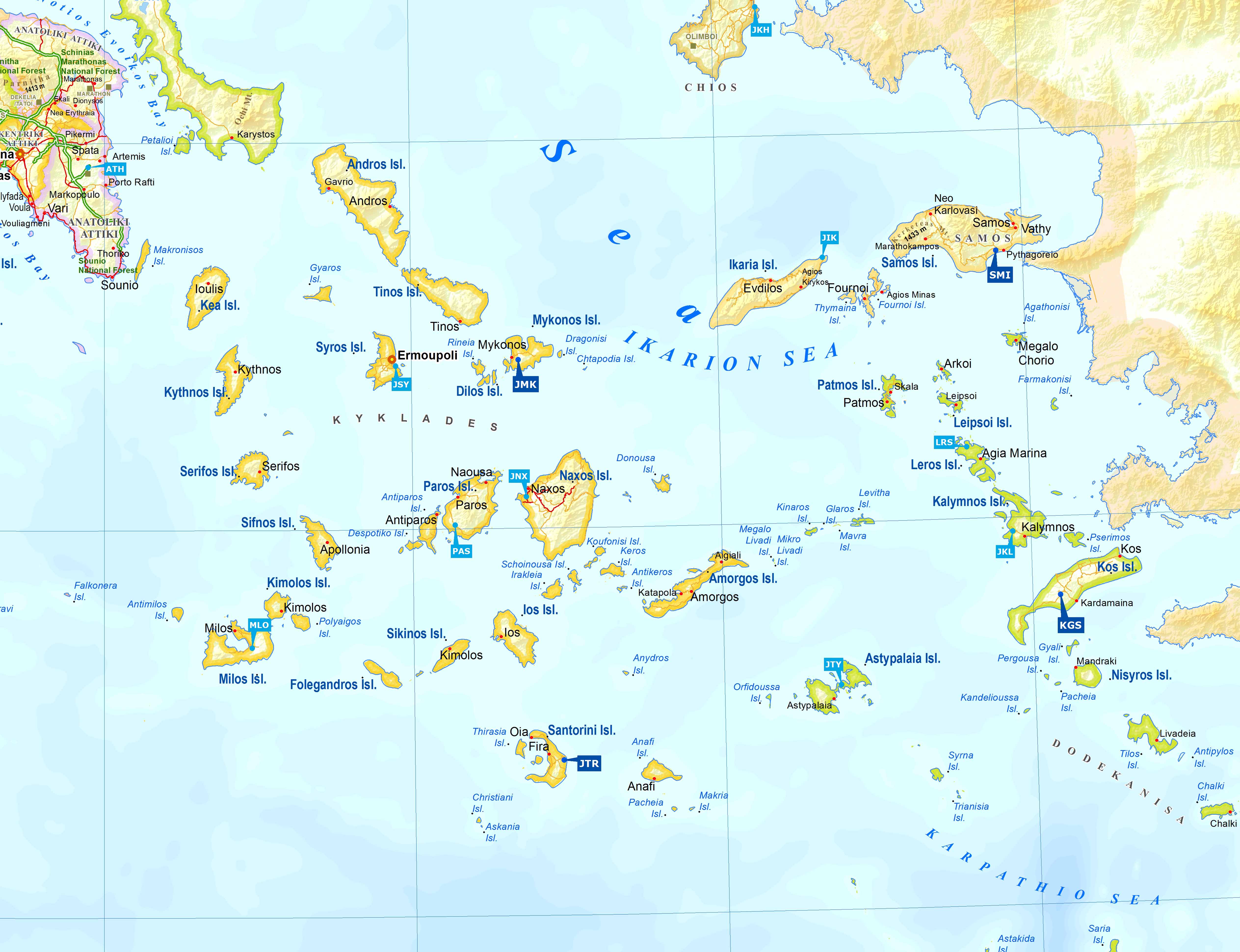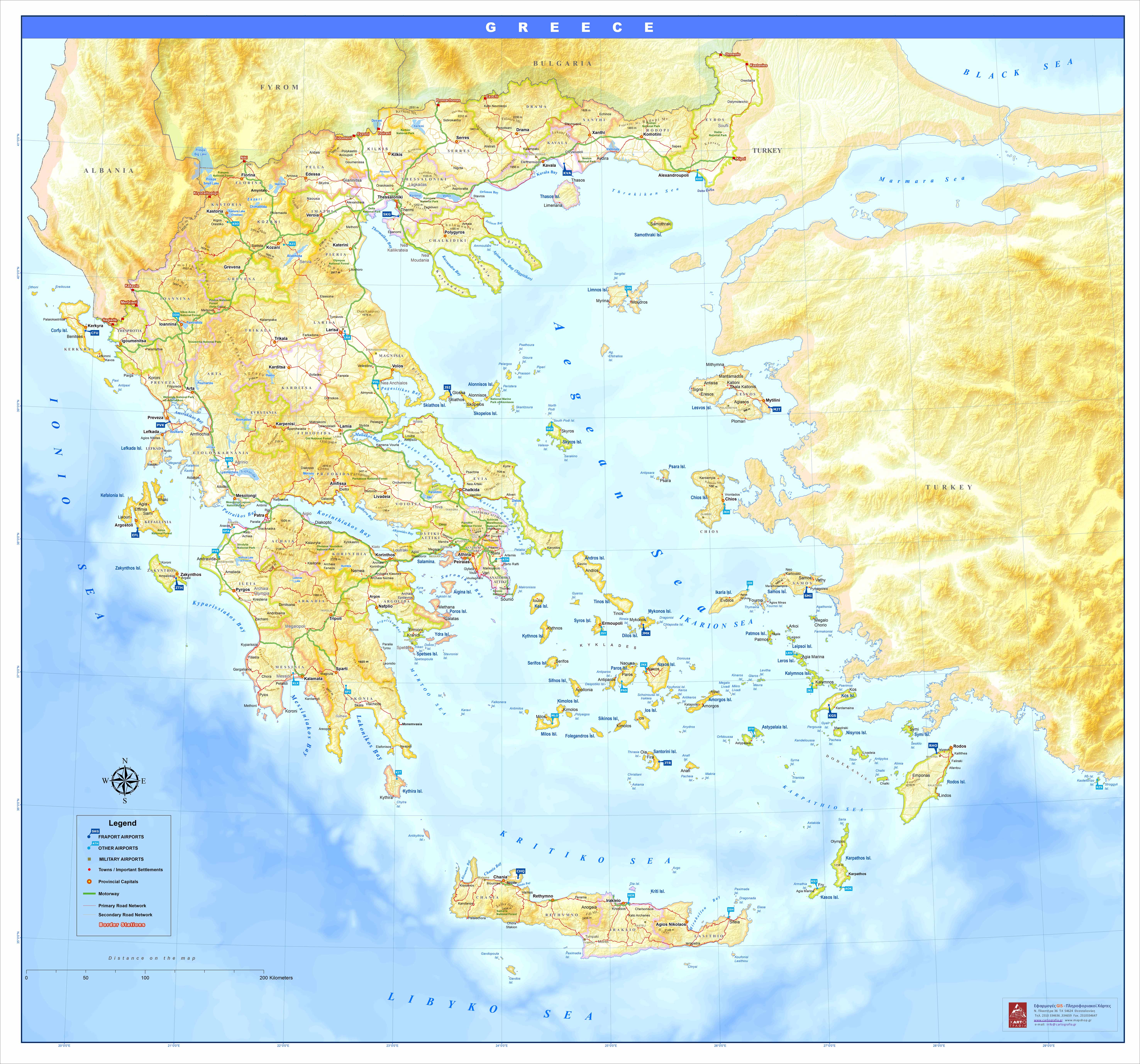 Χάρτης με τα αεροδρόμια της Ελλάδας