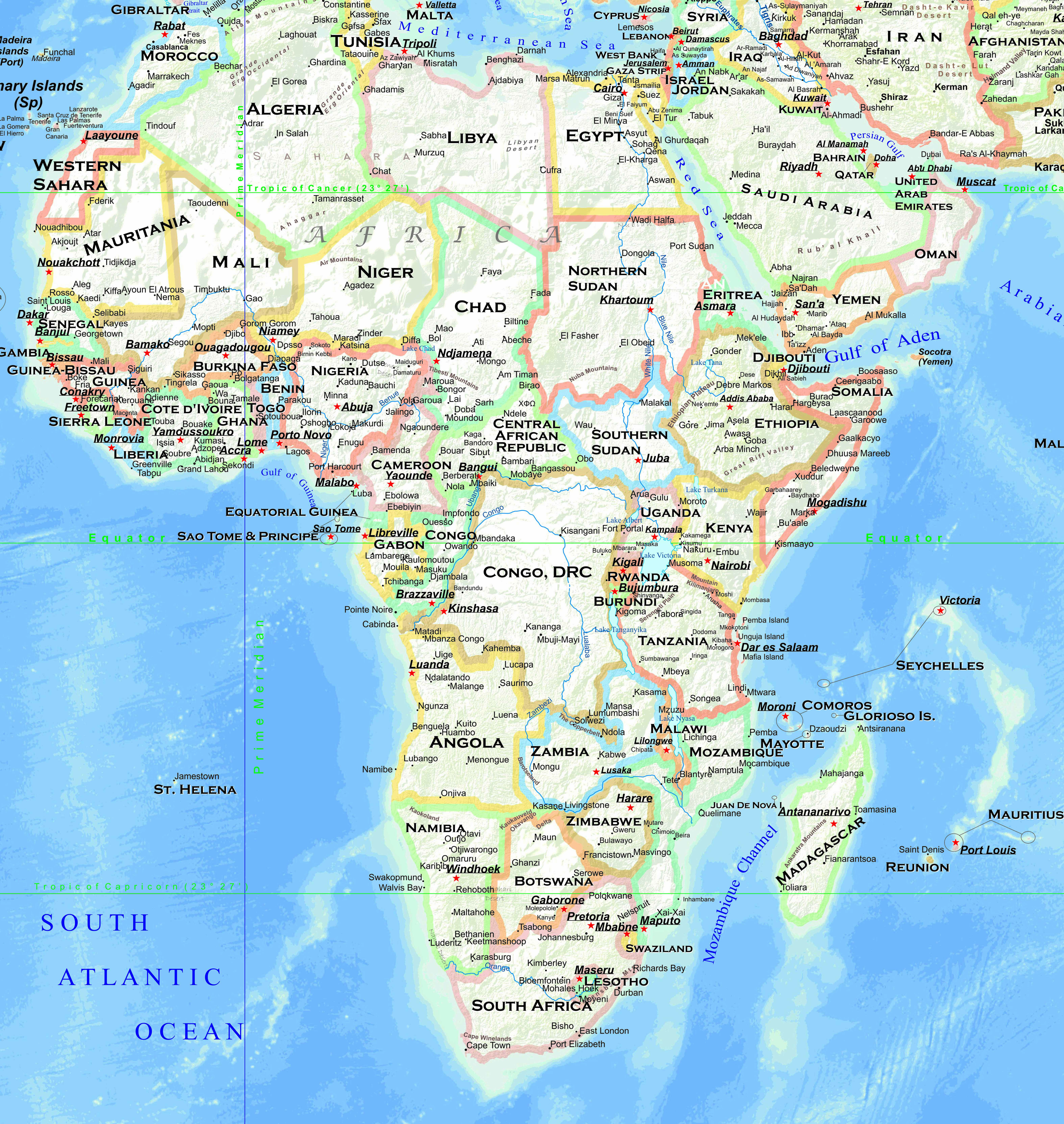 Παγκόσμιος χάρτης με τις πρωτεύσουσες των χωρών και το μέγεθος του πληθυσμού.
