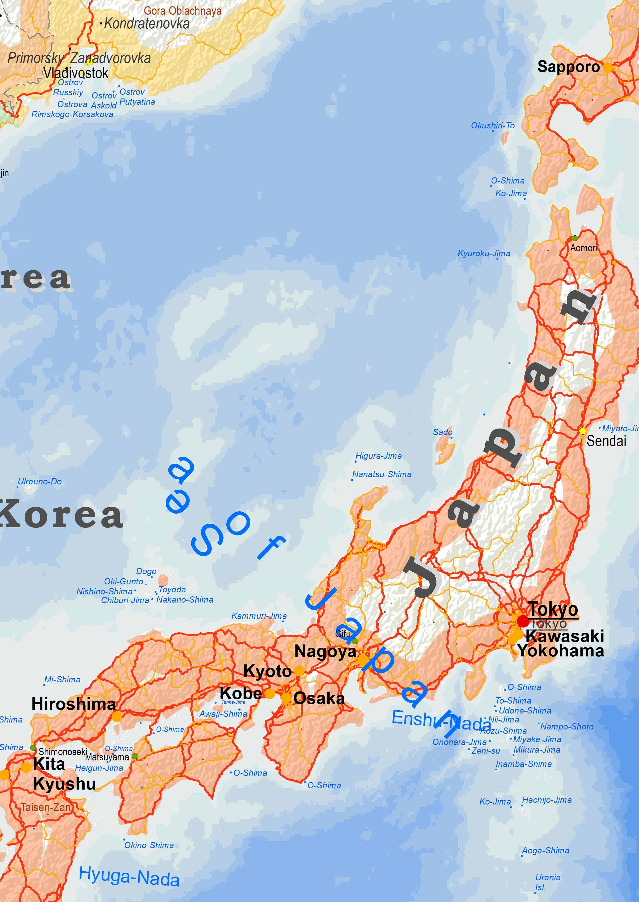 Χάρτης της Κίνας με το μέγεθος του πληθυσμού των πόλεων.