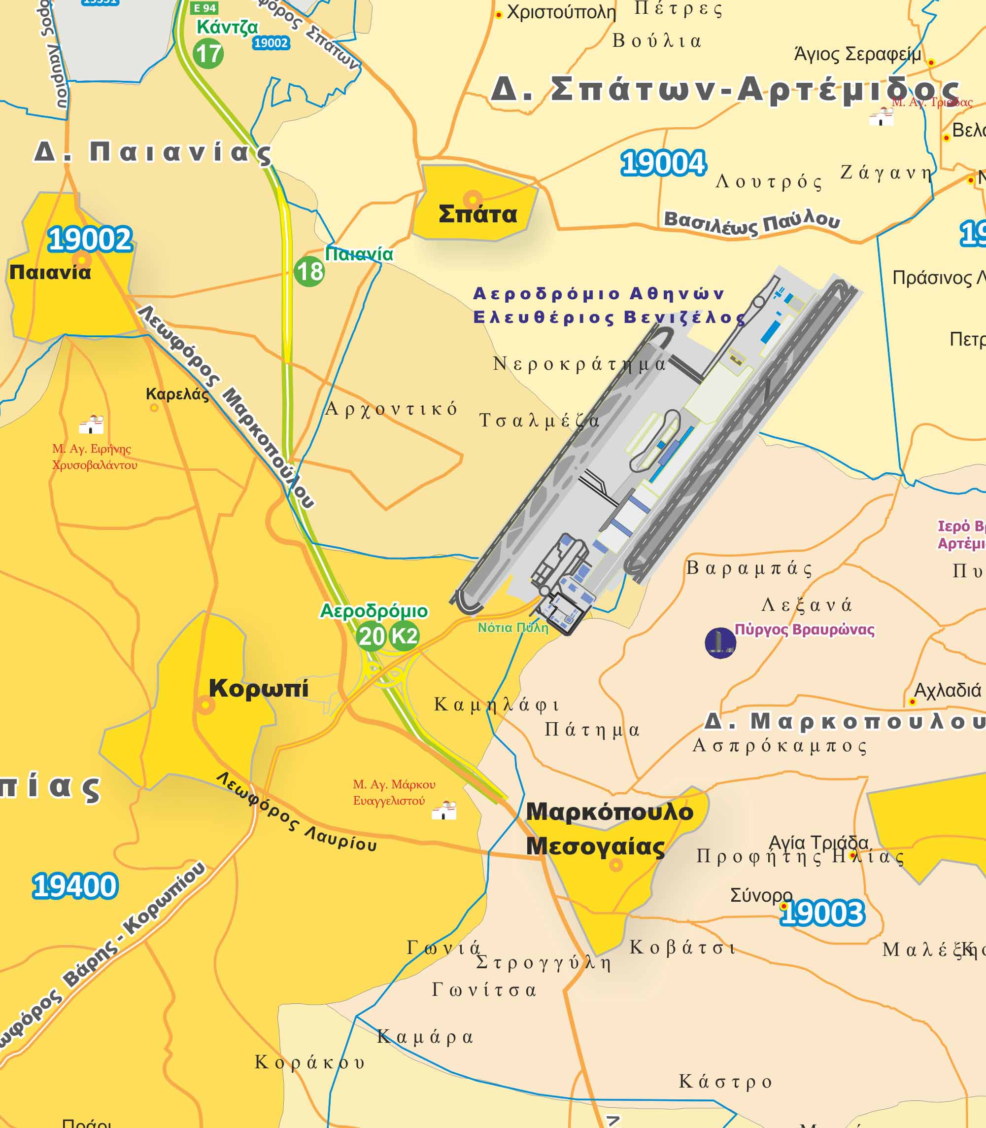 Χάρτης Περιφέρειας Αττικής με Ταχυδρομικούς Κώδικες