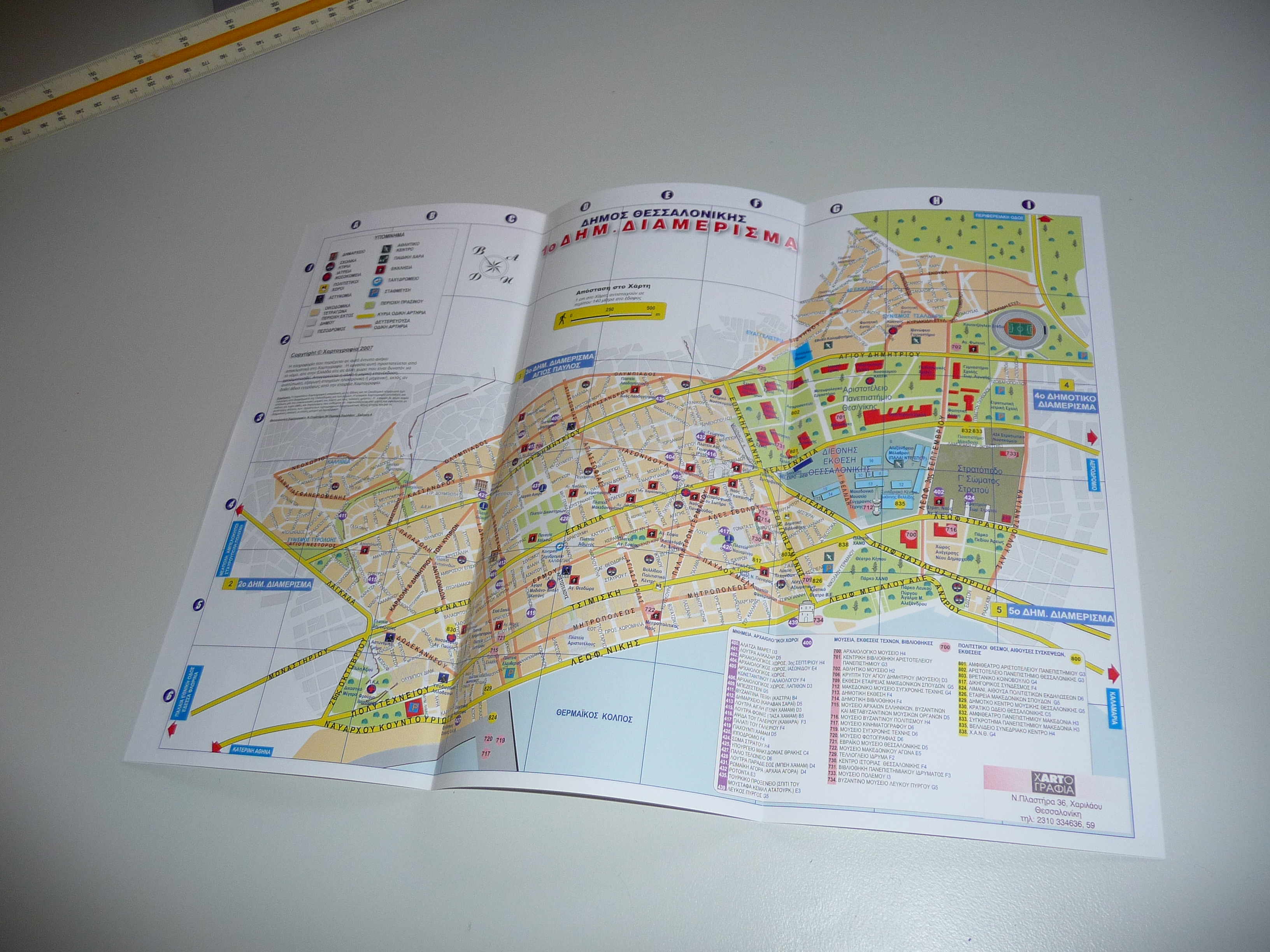 Ενα πρωτότυπο προϊόν που περιλαμβάνει τη Θεσσαλονίκη σε 15 Χάρτες ανά Δήμο(Καποδιοστριακό),με το ευρετήριο οδώ στη μία όψη και το χάρτη από την άλλη.