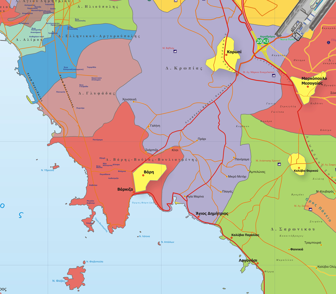 Χάρτης Αττικής με τους Καλλικρατικούς Δήμους.