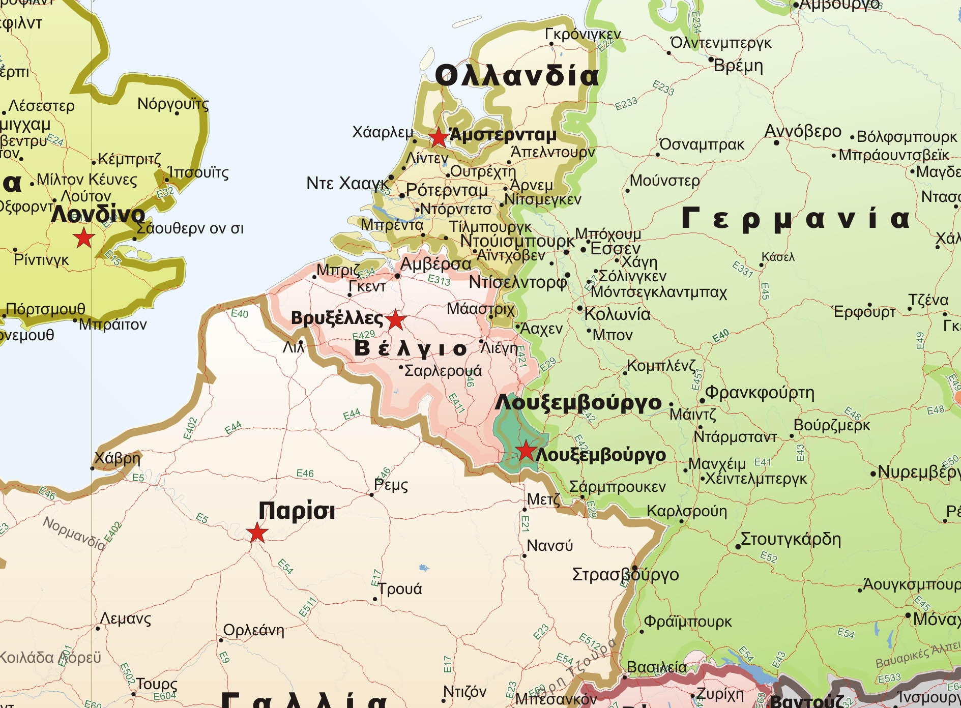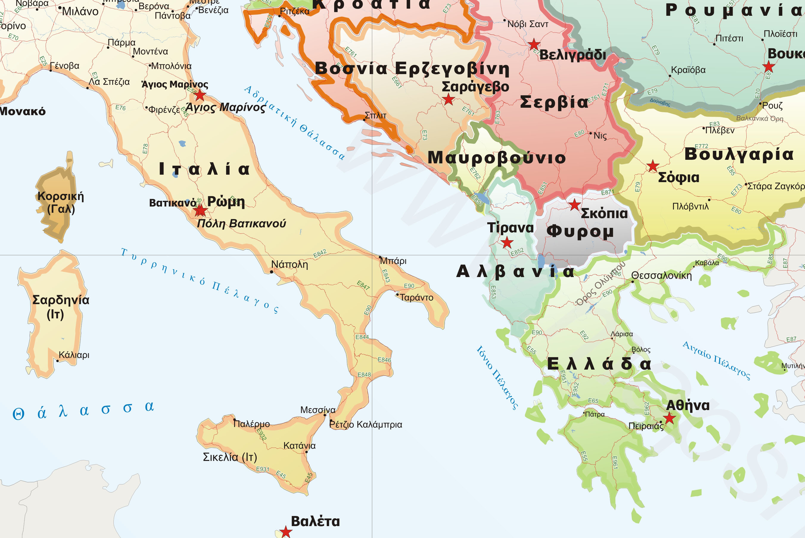Χάρτης Ευρώπης (Ελληνικά) με κύριο οδικό δίκτυο
