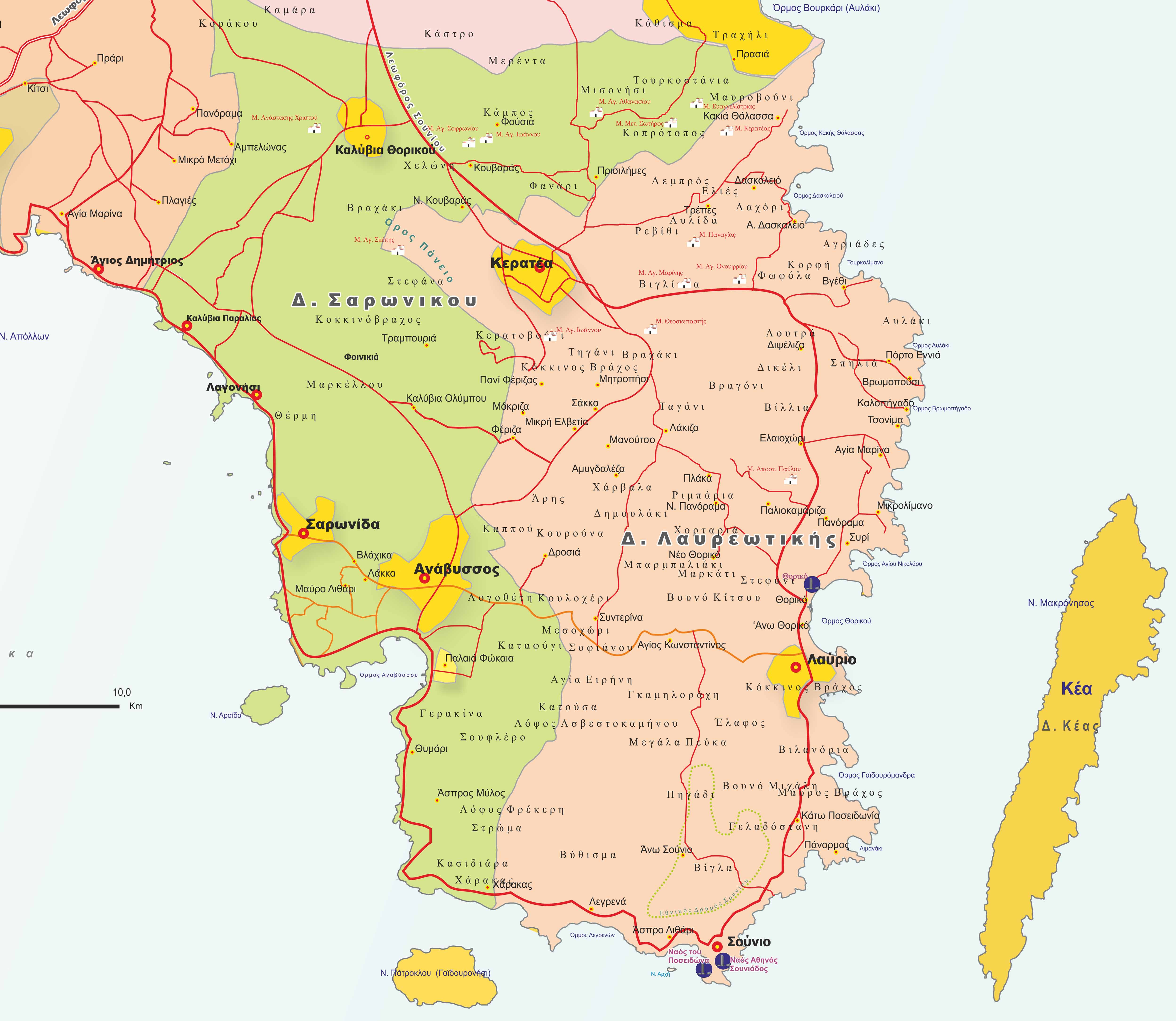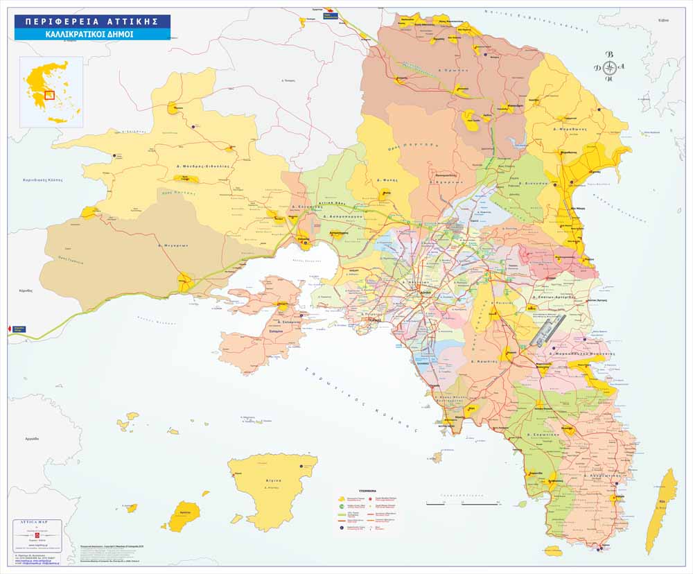 Χάρτης με τους καλλικρατικούς δήμους της Περιφέρειας Αττικής.