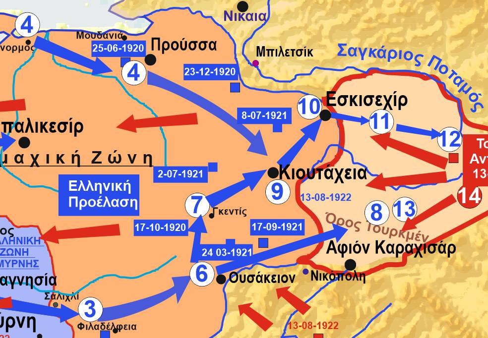 Χάρτης της Μικρασιατικής Εκστρατείας κατά την διάρκεια 1919-1922.