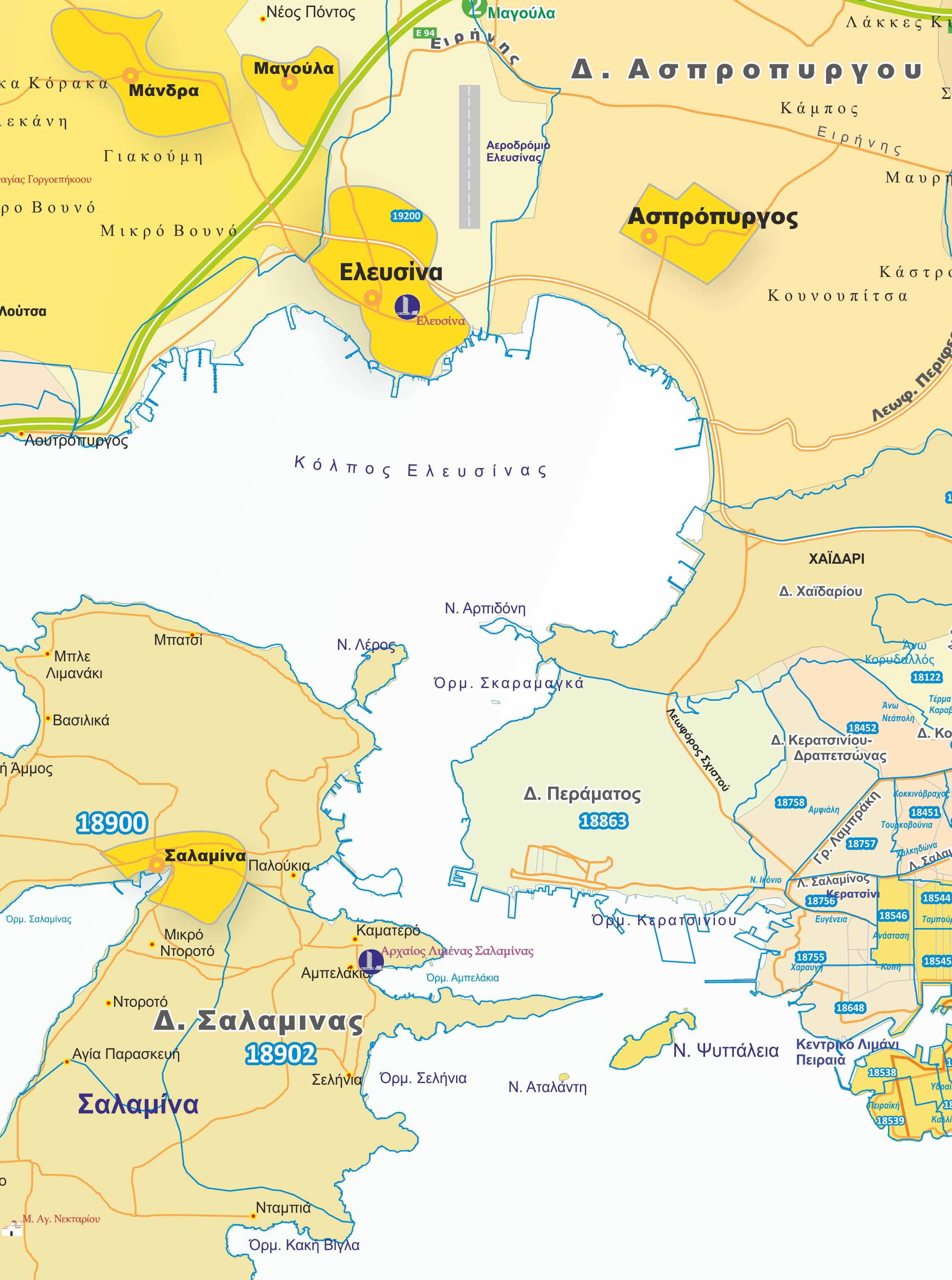 Χάρτης Περιφέρειας Αττικής με Ταχυδρομικούς Κώδικες